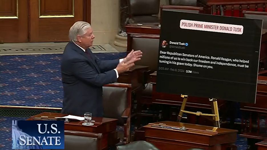 "Nie obchodzi mnie, co pan o mnie myśli" - z takimi słowami zwrócił się republikański senator Lindsey Graham do Donalda Tuska podczas dyskusji w Kongresie Stanów Zjednoczonych. Graham przybył na debatę, mając przy sobie dużą planszę z nadrukowanym tweetem premiera Polski, który wcześniej skrytykował amerykańskich senatorów.